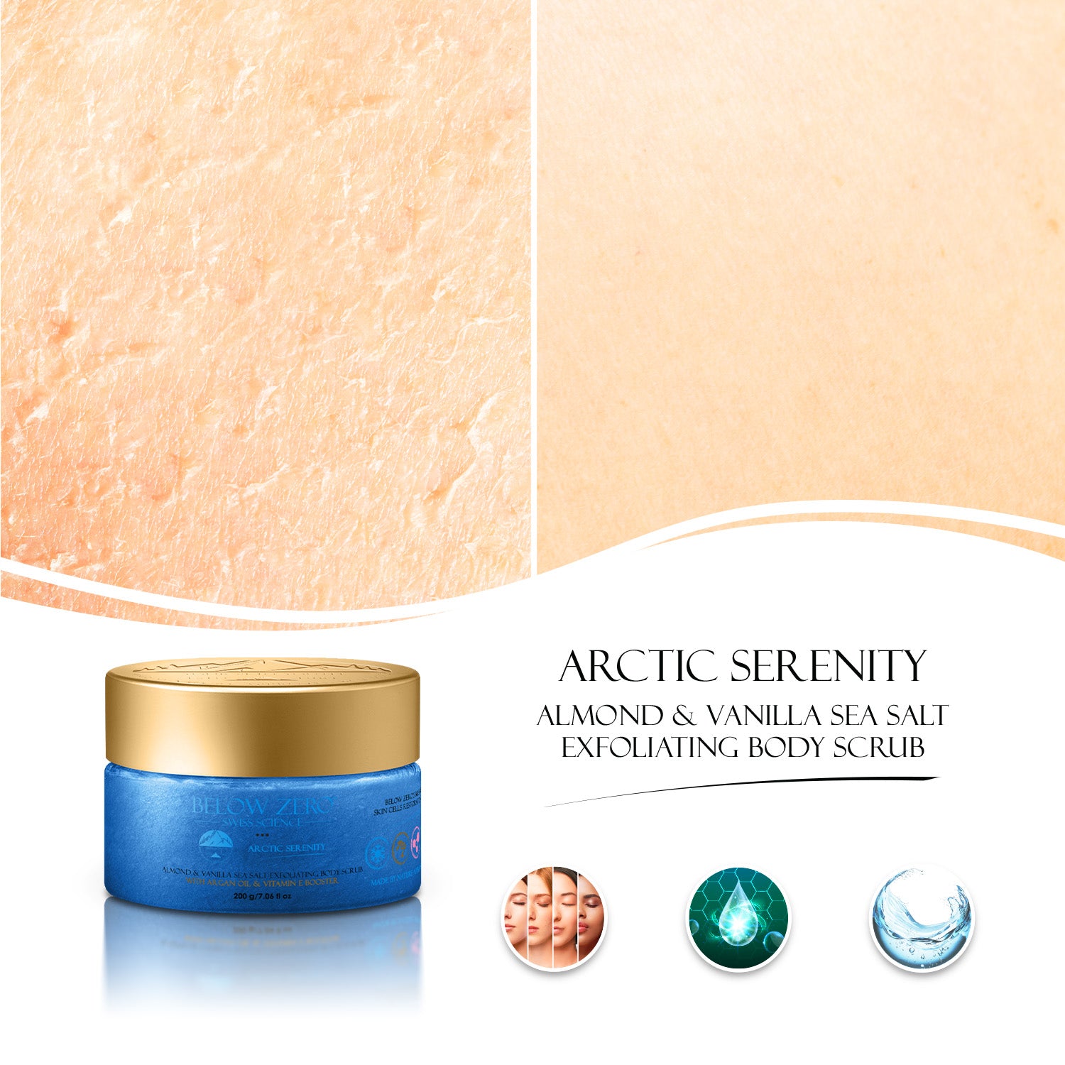 Below Zero Arctic Serenity Almond & Vanilla Sea Salt Exfoliating Body Scrub with Argan Oil & Vitamin E Booster