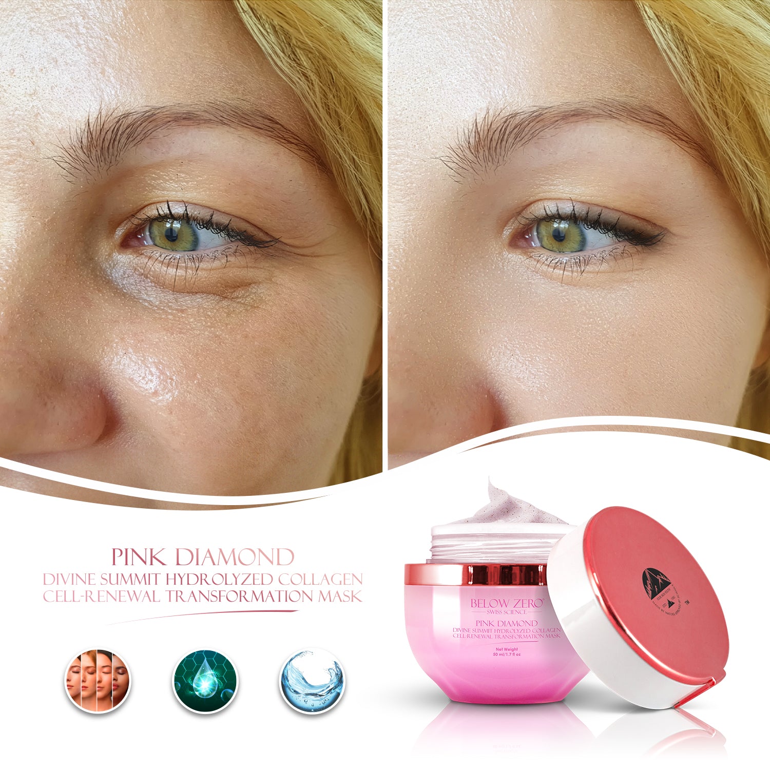 Below Zero Pink Diamond Divine Summit Hydrolyzed Collagen Cell-Renewal Transformation Mask