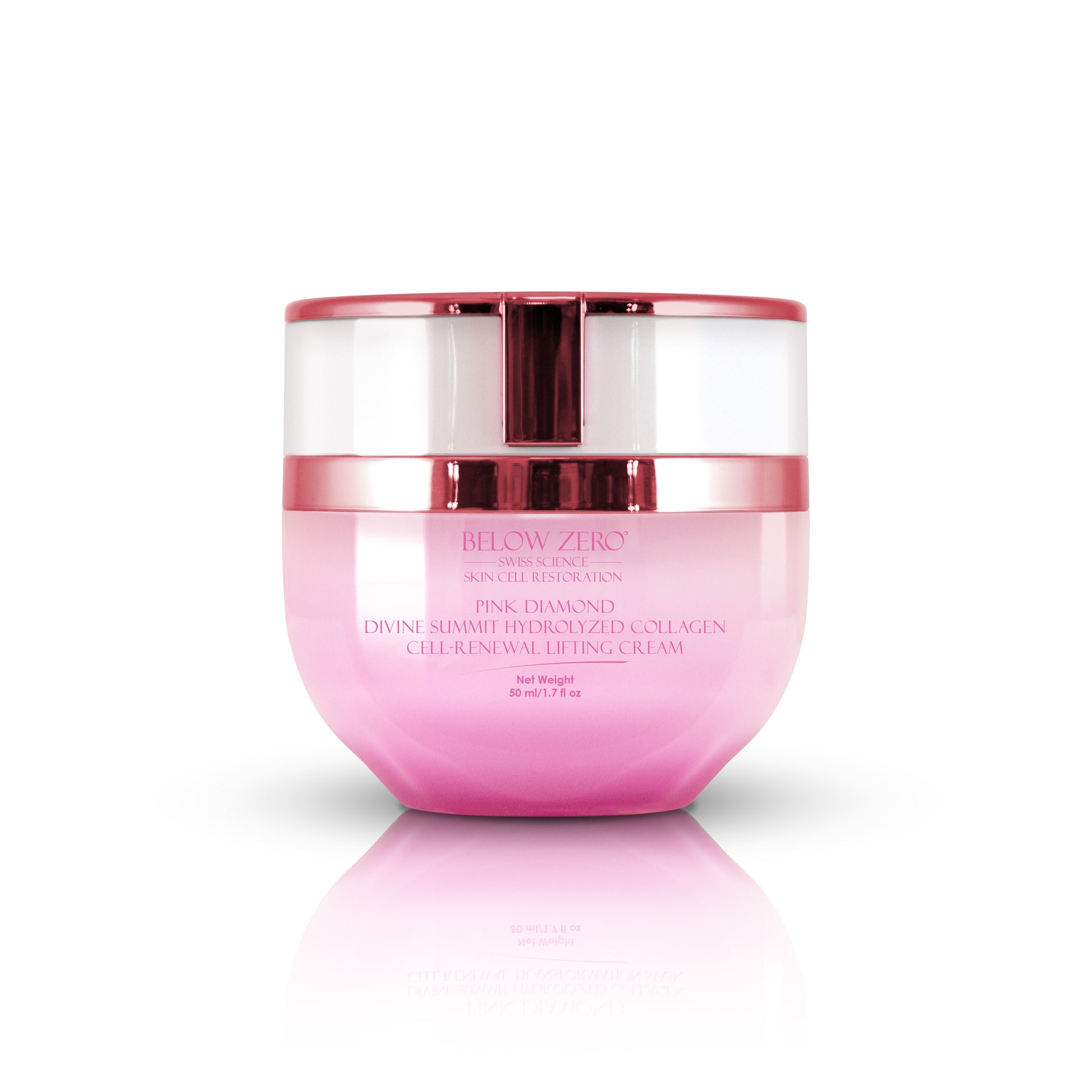 Elevate your skincare routine with the Below Zero Pink Diamond Divine Summit Hydrolyzed Collagen Cell-Renewal Lifting Cream. This luxurious cream is formulated with hydrolyzed collagen to support skin's natural cell renewal processes, promoting a smoother, firmer, and more radiant complexion. Its unique formulation allows for seamless integration with other skincare products, enhancing hydration and overall efficacy.