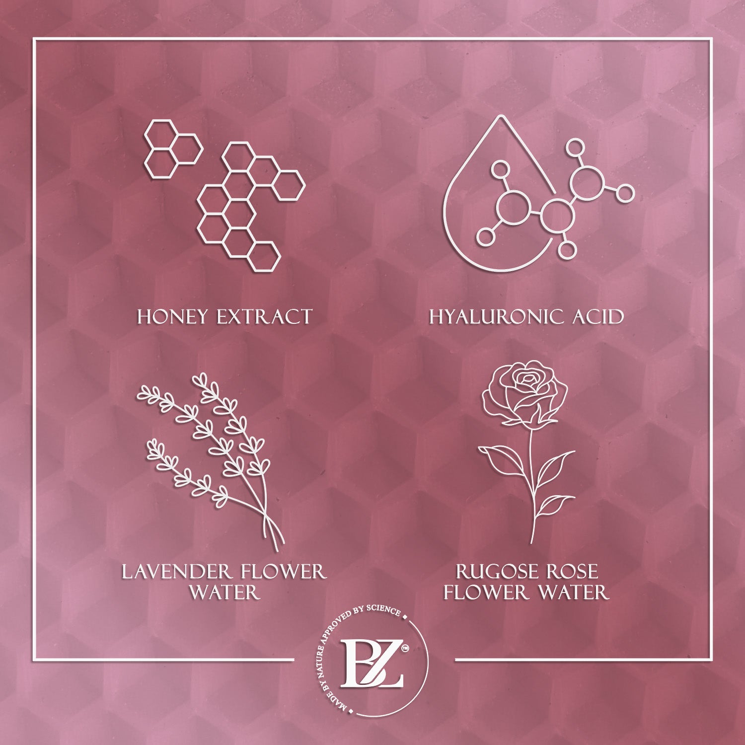 (Cleansing Honey): Water, Glycerin, Potassium Cocoyl Glycinate, Sodium Cocoyl Glutamate, Peg-7 Glyceryl Cocoate, Sodium Lauroamphoacetate, Glycereth-26, Potassium Chloride, Cocamidopropyl Hydroxysultaine, Sodium Chloride, Phenoxyethanol, Citric Acid, Xanthan Gum, Sodium Lauroyl Sarcosinate, Disodium EDTA, Rosa Rugosa (Rugose Rose) Flower Water, Butylene Glycol, Glyceryl Caprylate, Glyceryl Laurate, Lavandula Angustifolia (Lavender) Flower Water, Pentylene Glycol, Honey Extract, Lactobacillus/Soymilk Ferment Filtrate, Sodium Hyaluronate, Sodium Acetylated Hyaluronate, Sodium Hyaluronate Crosspolymer, Hydrolyzed Sodium Hyaluronate, Ethylhexylglycerin, Lavandula Angustifolia (Lavender) Oil, Rosa Rugosa (Rugose Rose) Flower Oil, Sodium Benzoate.