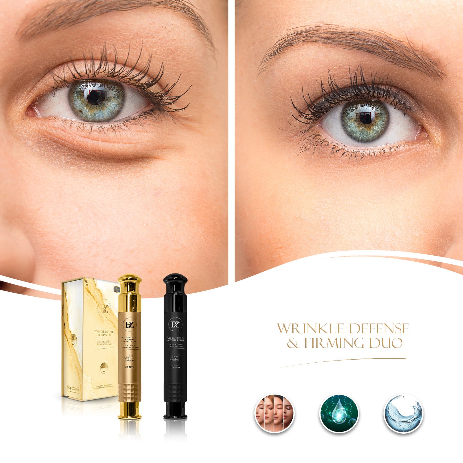 The Wrinkle Defense & Firming Duo is a two-step targeted care set created for areas that require lifting support and visible line refinement.